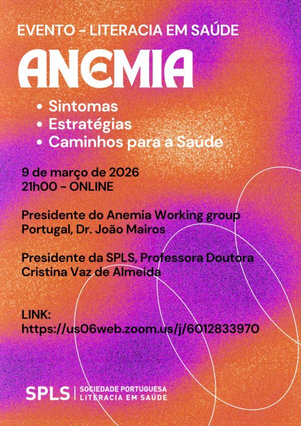A Sociedade Portuguesa de Literacia em Saúde (SPLS) promove, no próximo dia 9 de março, às 21h00, um webinar dedicado ao tema da anemia, saúde e prevenção, reunindo especialistas de referência nacional para uma sessão de esclarecimento, partilha de conhecimento e promoção da literacia em saúde.